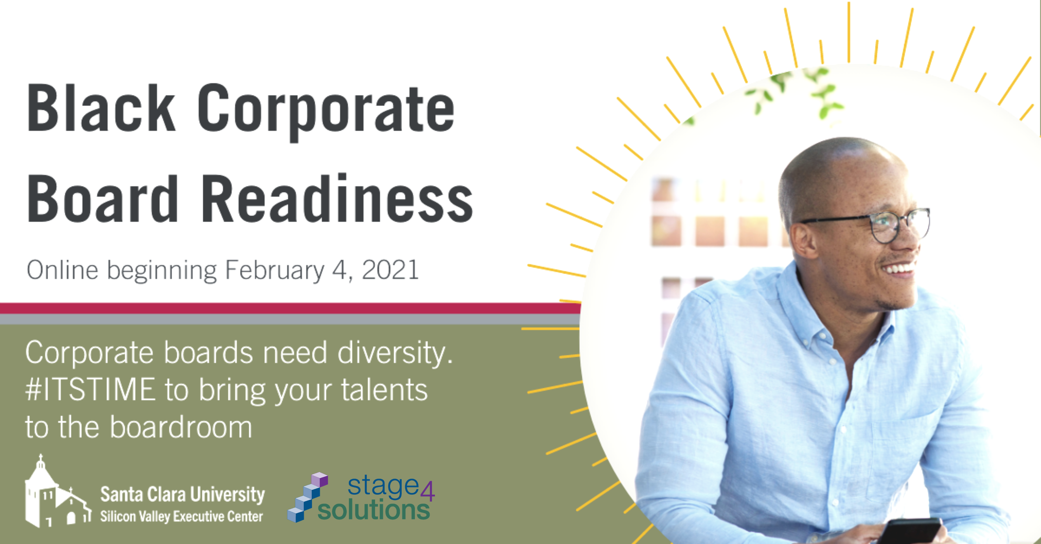 We are proud to be co-sponsors of the Black Corporate Board Readiness program with Santa Clara University’s Silicon Valley Executive Center. It’s well known that having a diverse corporate board leads to better business performance, and we are happy to support this initiative. Santa Clara University’s Women’s Corporate Board Readiness program (now recruiting its fifth cohort) has already helped women land board positions, and they are continuing our mission of building ecosystems to create authentic board diversity with the launch of this program.