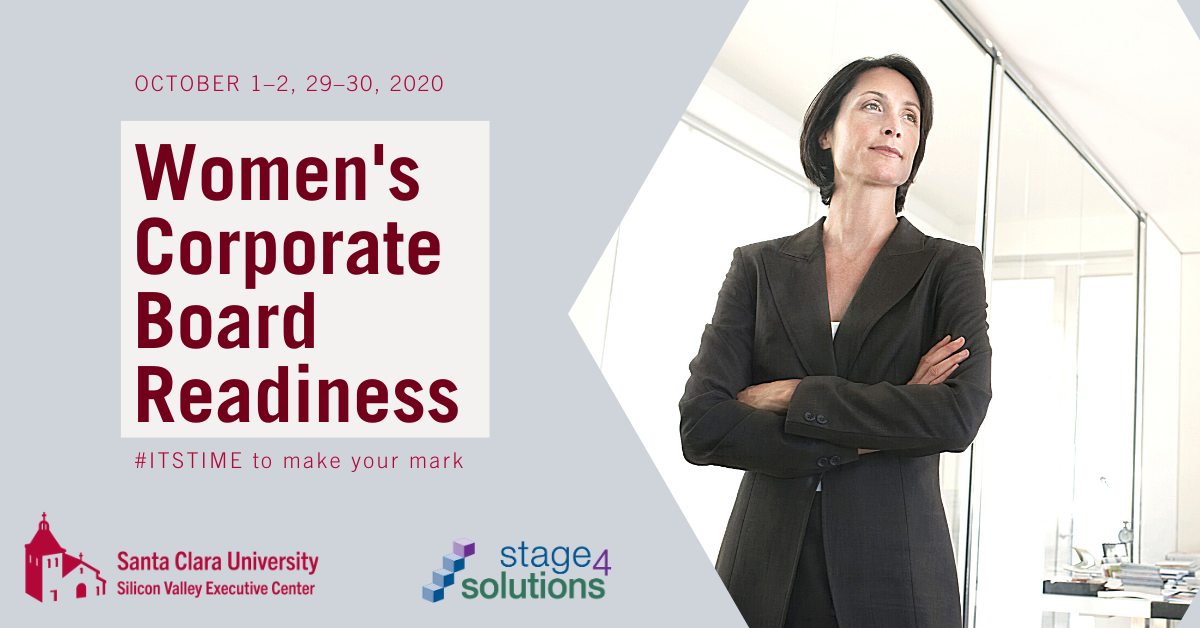 We are proud to be co-sponsors of the Women’s Corporate Board Readiness program with Santa Clara University’s Silicon Valley Executive Center. We are excited to support this initiative to enable more women to be on corporate boards and help improve companies’ performance.