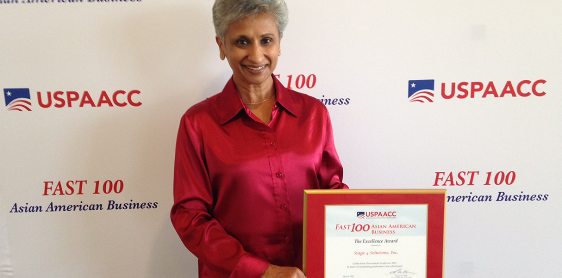 Stage 4 Solutions continues to grow and be recognized for its achievements. We are excited to receive the prestigious award for “Fast 100 Asian American Businesses” by USPAACC (US Pan Asian American Chamber of Commerce) for again being one of the top 100 of the fastest growing Asian American owned Businesses in the US. We have previously won this award in 2014 and am pleased to receive this title again. We had the honor of accepting the award at the CelebrAsian Conference held in San Diego, CA on May 31 – June 2, 2017. This award is especially important to us because we believe that the best ideas and insights to win in global markets come from a diverse set of team members, resources, and vendors. Our diversity makes us a stronger and better partner.